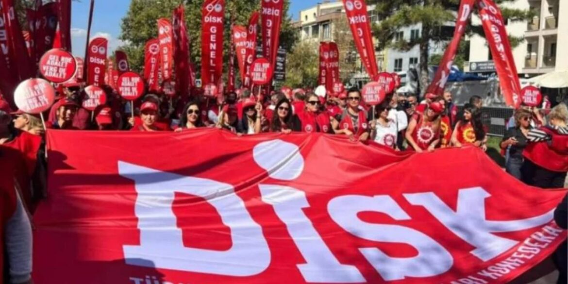 Deniz Şahin Gümüştekin, head of DİSK General-İş Izmir Branch No. 8, and Mine Bilir, a member of DİSK, were referred to the court on duty for arrest on charges of ‘insulting the President’. According to the allegations, slogans such as ‘Dictator Erdoğan’ and ‘Thief Erdoğan’ were chanted during the rallies in support of Ekrem İmamoğlu. While 8 other union representatives were released after their statements, Gümüştekin and Bilir are still being processed at the courthouse. DISK declares it will continue struggle for “democracy, law and justice”