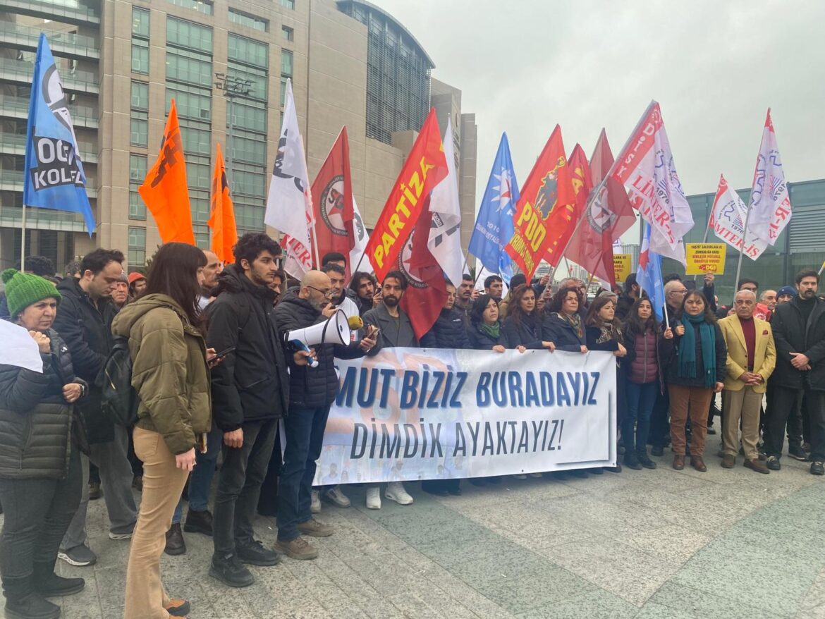 Of the 94 people detained in raids on the Socialist Party of the Oppressed (ESP), 55 were referred to the Criminal Court of Peace with a request for arrest without their statements being taken by the prosecutor’s office. It was reported that the remaining detainees would have their police statements taken on the same day. Responding to a call from the ESP, numerous political parties, democratic mass organizations, and union representatives gathered in front of the Istanbul Çağlayan Courthouse. A statement issued described the operation as amounting to “political genocide.” It was reported that those detained included ESP Co-Chair Murat Çepni, former co-chairs, members of the Central Executive Committee, SKM Spokesperson Tanya Kara, SGDF Co-Chair Berfin Polat, Limter-İş President İleri Devrim Yurtsever, and ETHA workers.