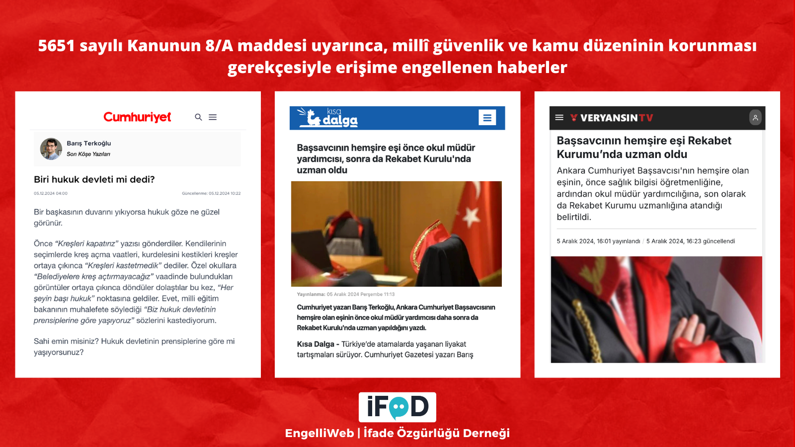 Cumhuriyet columnist Barış Terkoğlu’s article titled “Did someone say rule of law?” was blocked from access.