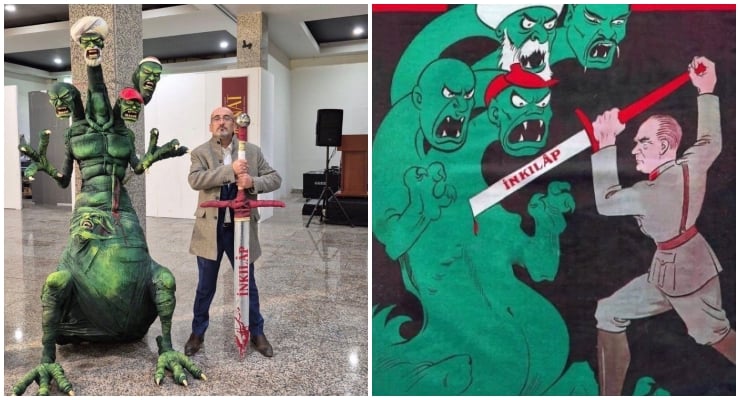 Murat Katfar, who exhibited the sculpture “Revolution” at the Lütfi Kırdar Convention Center, has been arrested in connection with an investigation into the artwork. It was reported that Katfar was targeted on social media after sharing the work, leading to an investigation on the grounds of “inciting the public to hatred and hostility.” His lawyer stated that social media perception had taken precedence over the law without a defense being heard.