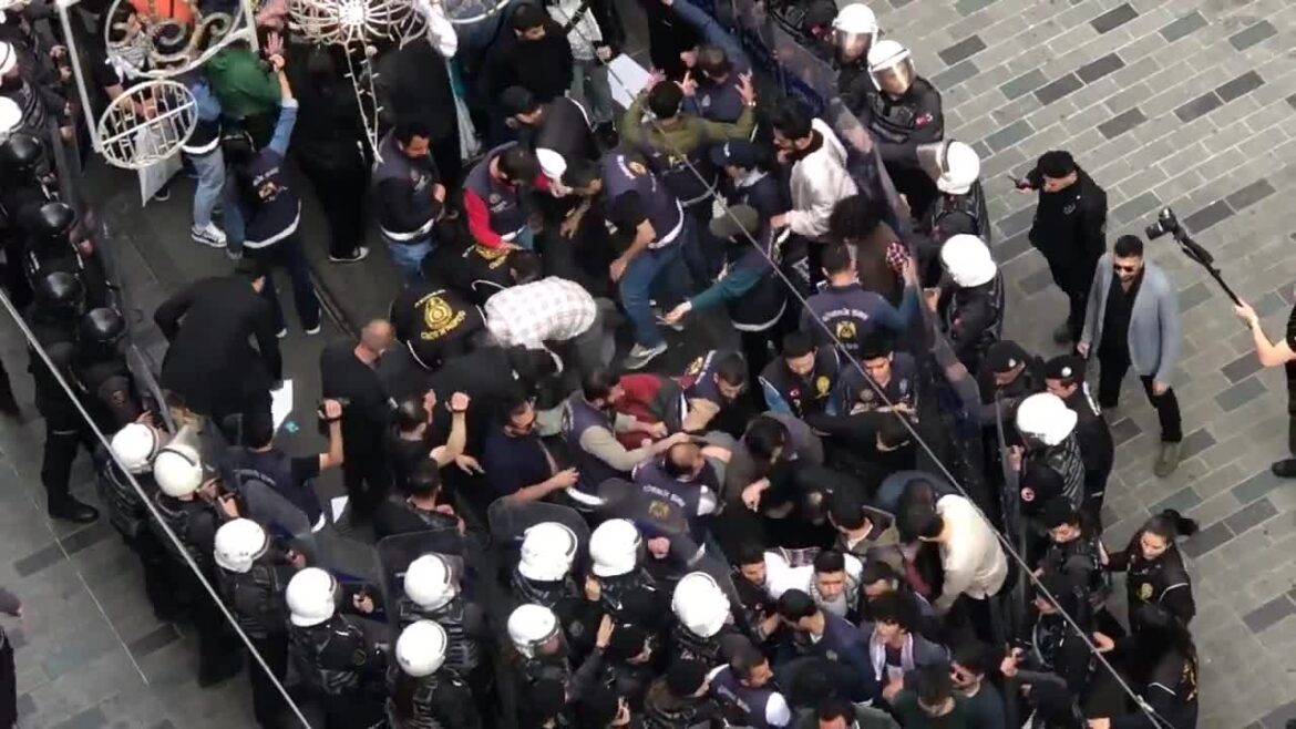 The police intervened in the demonstration of One Thousand Youth for Palestine activists in Taksim, Istanbul, demanding the cessation of trade between Israel and Turkey. Many activists were detained and police violence was caught on camera.