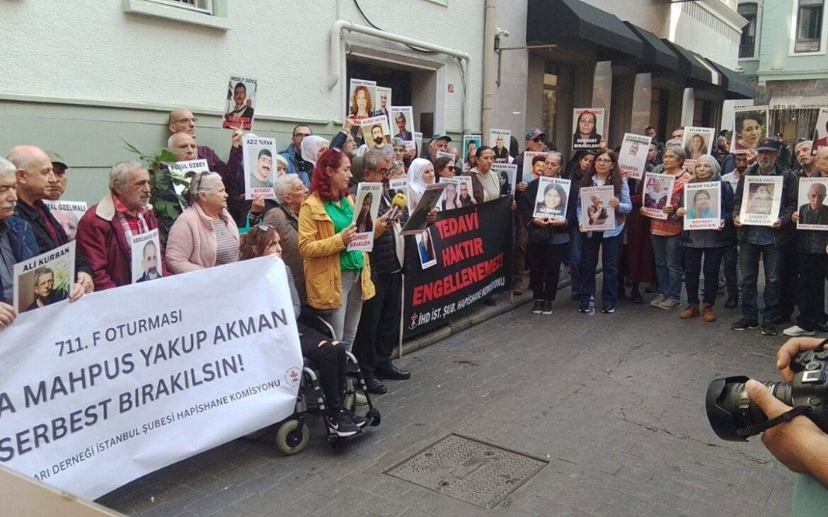 The Human Rights Association (İHD) Istanbul Branch Prison Commission brought attention to the situation of seriously ill prisoners during its 711th “F Sit-in” protest, highlighting the case of Yakup Akman, a seriously ill prisoner held at Marmara Campus Prison.
