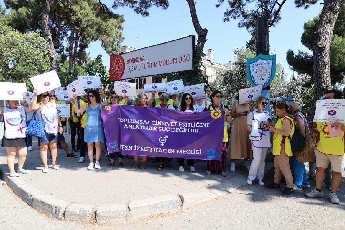KESK İzmir Women’s Assembly organized a protest in front of Bornova District Directorate of National Education in support of teachers from Eğitim Sen who were reprimanded for giving a “Gender Equality Class” on March 8. The women carried the banner “Teaching gender equality is not a crime”, presented petitions and chanted various slogans. KESK Women’s Secretary Döne Gevher and Eğitim Sen executive Dilek Karakul emphasized in their statements that gender equality is a fundamental part of democratic and scientific education and reacted to the oppressive and reactionary practices of the Ministry of National Education.