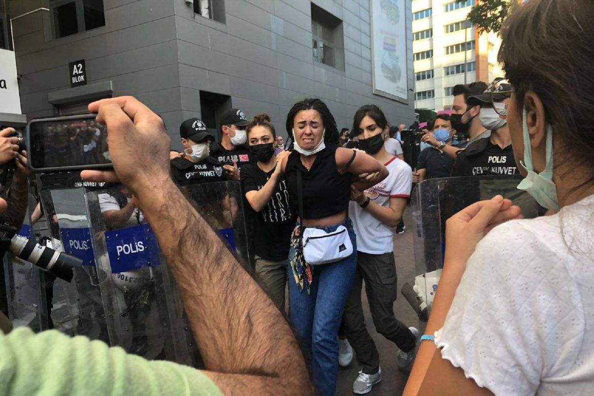 İstanbul Sözleşmesi Ankara Kampanya Grubunun çağrısıyla Azra Gülendam Haytaoğlu ve Emine Gökkız’ın öldürülmesine ilişkin bir araya gelen kadınların eylemine polis müdahale etti. “İstanbul Sözleşmesi’nden vazgeçmiyoruz” ve “6284’ü uygulatacağız” diyen kadınları barikatla ablukaya alan polis, 11 kadını darp ederek gözaltına aldı.
