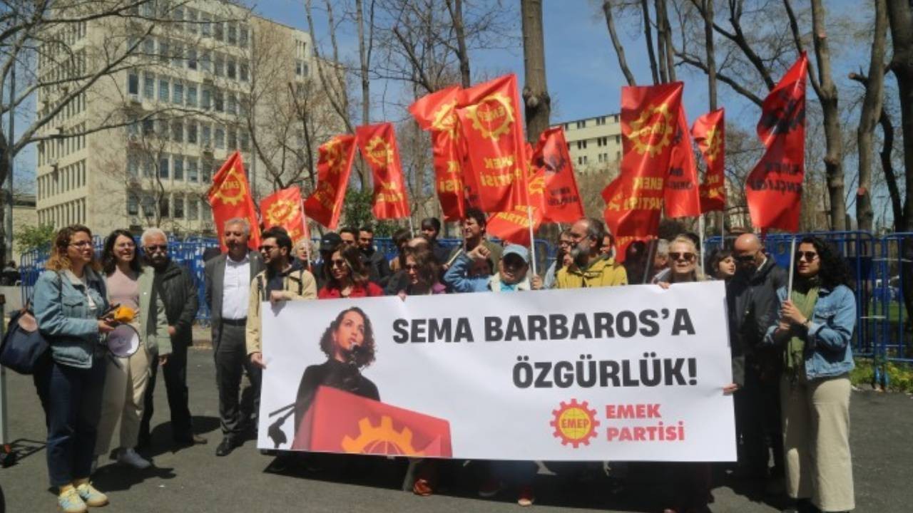 Eylemde “Sema Barbaros’a özgürlük” pankartı açılırken, EMEP Genel Başkanı Seyit Aslan operasyonlara tepki gösterdi. Aslan, 70 gündür tutuklu bulunanların neden hala cezaevinde olduğunu sorarak, “Barış ve demokrasi talep edenler gözaltı ve tutuklamalarla susturulmak isteniyor” dedi.