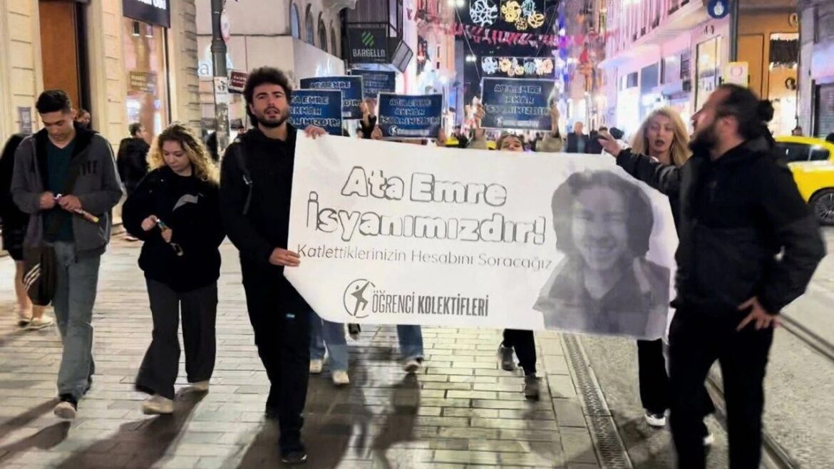 Balıkesir’ de moto kuryelik de yapan üniversite öğrencisi Ata Emre Akman’ın teslimat yaptığı akşam sokak ortasında vahşice bıçaklanarak öldürülmesini İstiklal Caddesi’nde protesto eden üniversite öğrencileri gözaltına alındılar.