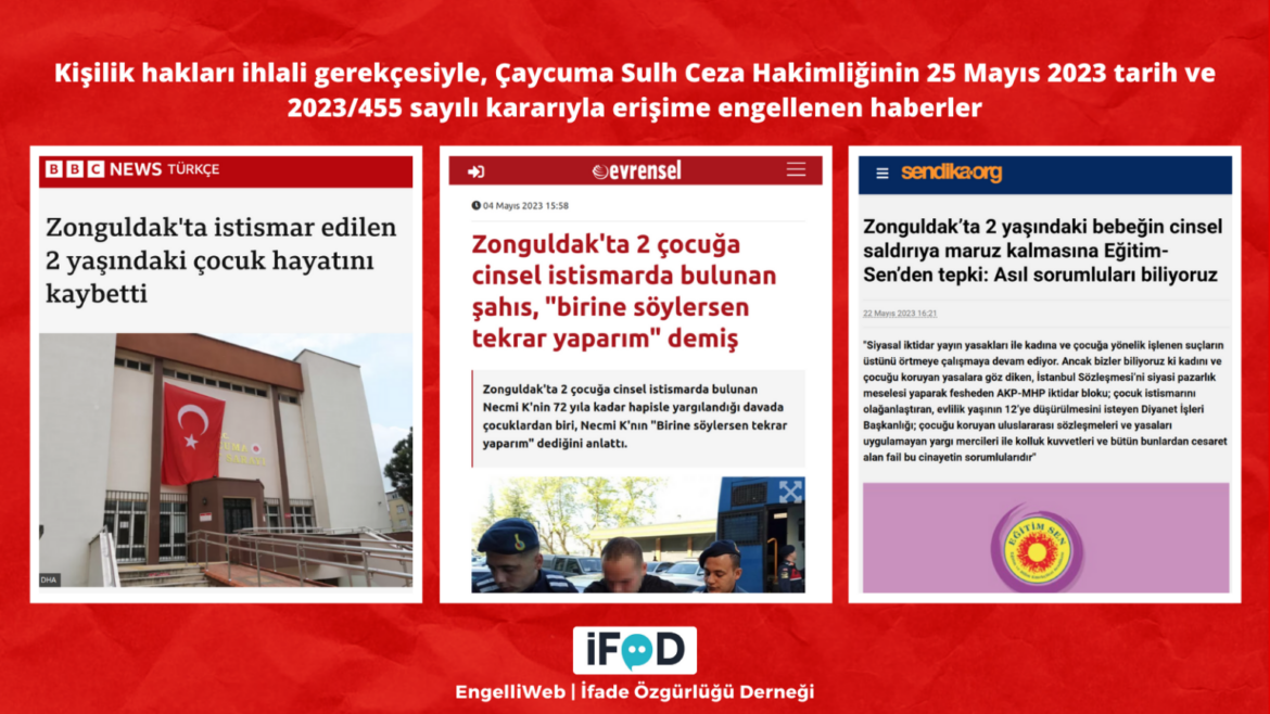 – Zonguldak’ta istismar edilen 2 yaşındaki çocuk ile ilgili haberler, Aile ve Sosyal Hizmetler Bakanlığının talebiyle, Çaycuma Sulh Ceza Hakimliği tarafından erişime engellendi.