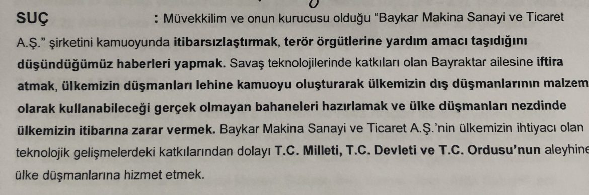 Suikaste uğrayan Mevlüt Mevludi’nin röportajında “Bayraktar Holding’e” çalıştığını haberinde ifade eden Mustafa Hoş, Bayraktar Holding’in şikayeti üzerine ifadeye çağrıldı. Holding avukatları suç duyurusunda “Hoş’un ilgili haberle savunma sanayiinde önemli bir yer tutan holding nezdinde Türkiye’nin düşmanlarına hizmet ettiğini” iddia ediyor.