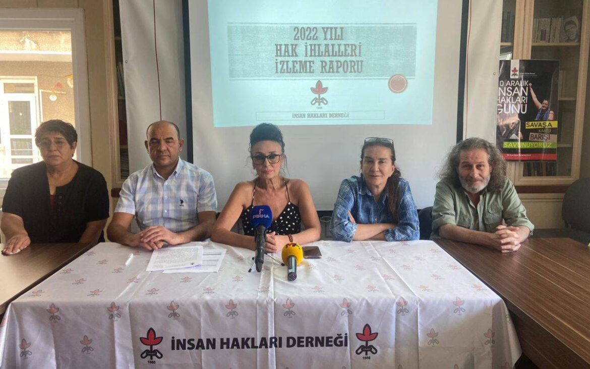 İnsan Hakları Derneği (İHD), 2022 Yılı Türkiye İnsan Hakları İhlalleri Raporu’nu açıkladı. Türkiye’nin, altına imza attığı uluslararası sözleşmeler başta olmak üzere, kendi iç hukukunu da uygulamadığının vurgulandığı rapora göre, bir yılda 1452 kişi gözaltında, 2947 kişi gözaltı yerleri dışında,4553 kişi de toplumsal gösterilere sırasında işkence ve kötü muameleye maruz kaldı. Dernek, “İfade Özgürlüğüne Yönelik İhlaller” başlığı altında 1475 kişi hakkında 1469 dava tespit etti. Sonuçlanan 342 davada 269 kişiye toplam 1886 yıl, 11 ay, 22 gün hapis cezası, 53 kişiye 650,232 TL para cezası verildi. 66 davada yargılanan 351 kişi ise beraat etti. Bir yıllık sürede 308 kişi hakkında 76 yeni soruşturma daha başlatıldı. 2022 boyunca dernek üye ve yöneticisi 25 hak savunucusu gözaltına alındı, 1’i tutuklandı. Hak savunucuları hakkında 7 dava açılırken derneğin eş genel başkanı Eren Keskin’e açılan ve devam eden dava sayısı 125’e çıktı. Yıl boyunca kolluk tarafından 571 toplantı ve gösteriye müdahale edildi. 119 kişi hakkında 25 ayrı soruşturma açılırken, 1195 kişiye toplam 59 dava açıldığı ve devam ettiği, bu davalarda 42 kişiye 47,945 TL para cezası verildiği, 13 davada 197 kişinin beraat ettiği tespit edilebildi. Raporun tam metni için tıklayınız…