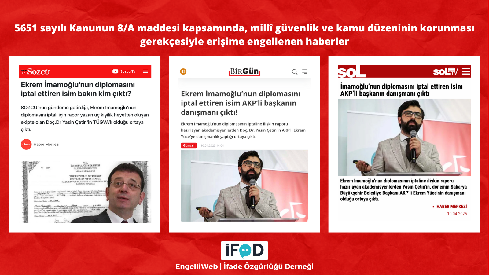 Ekrem İmamoğlu’nun diplomasının iptaline ilişkin raporu hazırlayan akademisyenlerden biri olan Doç. Dr. Yasin Çetin hakkında çıkan haberler erişime engellendi.