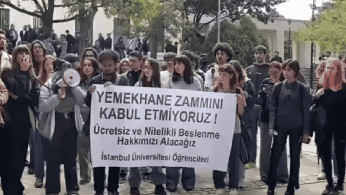 İstanbul Üniversitesi öğrencileri, yemekhane ücretlerine yapılan zammı protesto etmek için kampüs içinde yürüyüş düzenledi. Üniversite güvenliği, eyleme megafonlarına el koyarak müdahale etti.